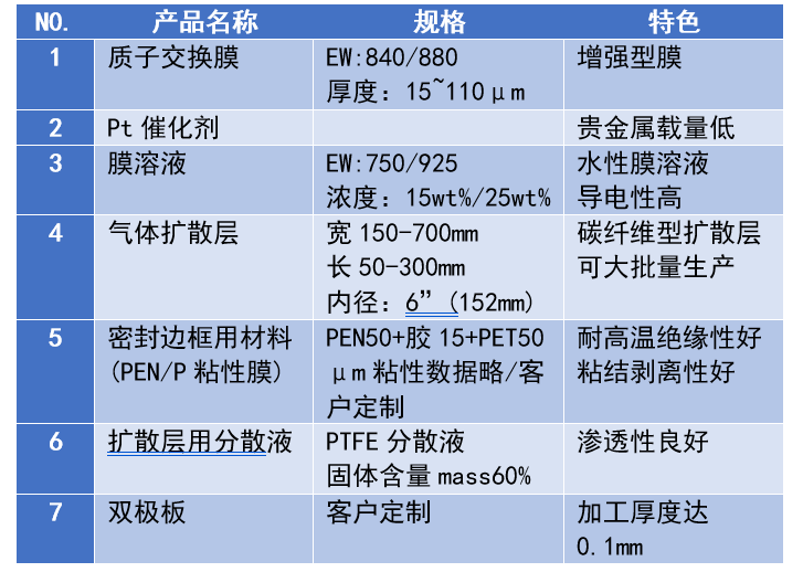 ① 燃料电池部件销售:质子膜、炭纸、双极板、膜电极等。